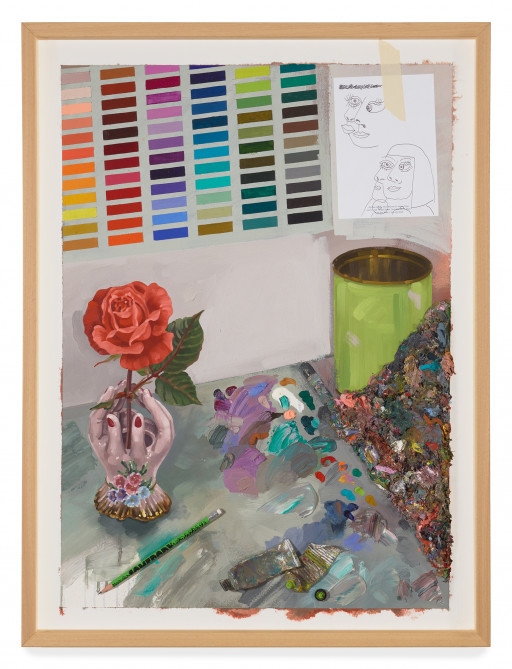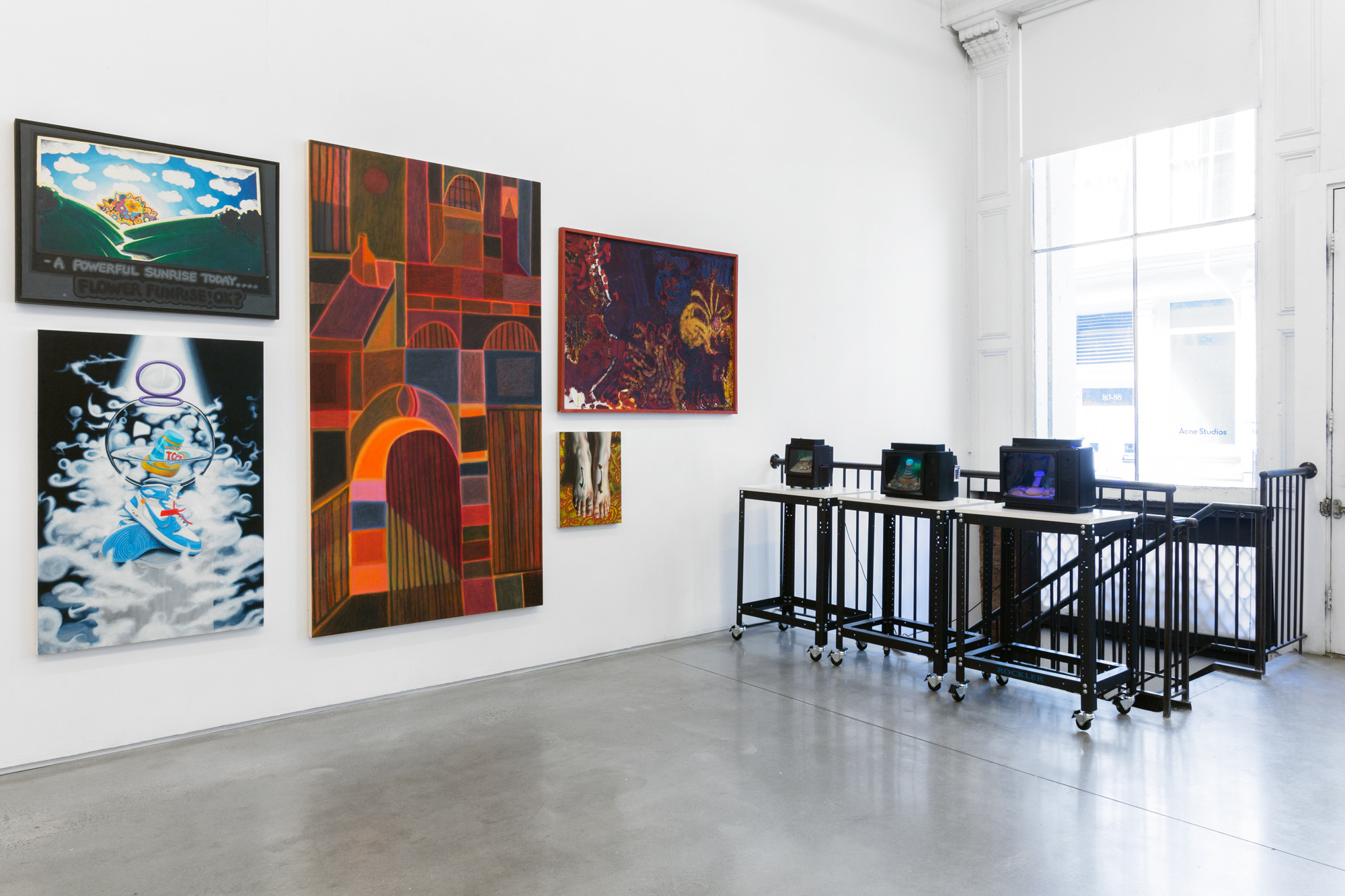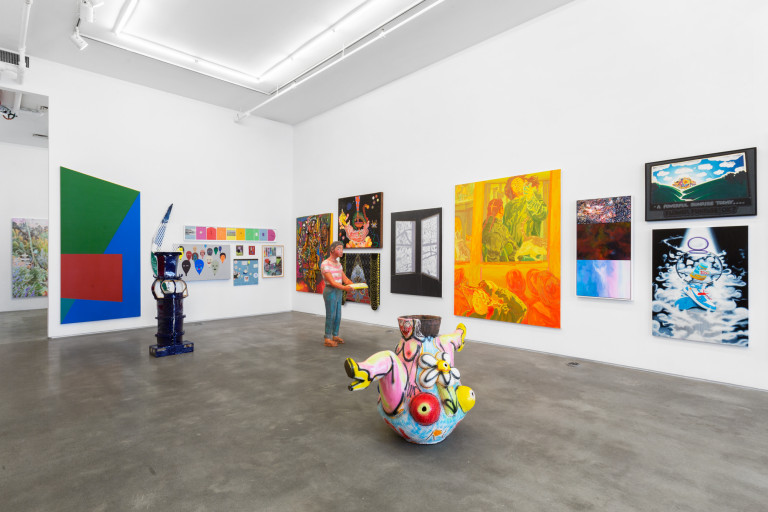 The girl-artist abandons linearity and walks into the richly textured forest. The forest lies on the outer edge of expression, troubling the divide between abstraction and figuration. It is anti-establishment and under recognized, “a flowering of anomalies and apostasies” (Rebecca Solnit). Contrarian approaches ricochet from limb to limb—fuck labels, fuck schools, fuck tedious expectations. Life in the forest defies parameters. Along the roots of massive trees flow experimentation, surprise, dynamic interplays. The turquoise of Troy Lamarr Chew II’s Nike high-tops recodes sky and water. There’s a mysticism in the air that startles, like turquoise blood bisecting a painting by Mercedes Llanos. The girl finds herself in a kaleidoscopic dream narrative. Animistic relationships open portals to mysterious interiors with ambiguous spaces. Polymorphic species cross pollinate with frenetic effervescence, rearranging society’s debris into socially conscious assemblages. The girl learns to choose spontaneity over perfection. Natural and artificial legacies commingle in a slapstick approximation of her radical sense of self.